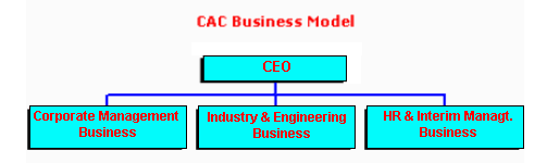 CAC‘s organization model is based on three parallel businesses under one common management structure headed by the C.E.O. The chart below shows the simple structure of CAC: